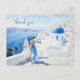 Postal Gracias Acuarela, Color azul, Santorini,