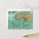 Cierre dos conchas marinas con un fondo azul acuático y gracias en letra guion. ...