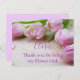 Tu precioso chica de flores hizo un gran trabajo en tu boda. Muéstrale lo mucho que la aprecias con esta postal de "Gracias" tulipán morado. Con hermosos tulipanes morados en un servicio de madera, su nombre aparece en el medio seguido de "Gracias por ser mi chica flor" escrito en morado. ¡Personalice esta tarjeta de publicación hoy! Foto de Silvia "silviarita"