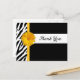 Un estampado de zebra blanco y negro de moda le agradece postal con una flor amarilla femenina linda de la margarita y las palabras "le agradecen" escrito a través de una moda y de una raya blanca elegante.