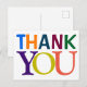¿Qué tal esta divertida y colorida tarjeta postal que dice 'GRACIAS' en letras grandes y coloridas?