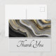 Tarjeta postal de agradecimiento con un diseño abstracto con un patrón de geoda de ágata. Dorado, gris, blanco y negro se mezclan formando olas elegantes de color. Perfecto para transmitir un aire de clase y elegancia.