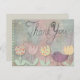 Mostrada sobre un fondo azul y rosa color agua adorable, esta tarjeta floral de agradecimiento le mostrará su apreciación. ¡Haga su pedido hoy mismo! Arte floral: Oberholster Venita