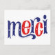 Agradecimiento en francés. Tarjeta postal en francés con palabras francesas para agradecer (merci).