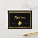 Una tarjeta de agradecimiento para el graduado. Un color de fondo negro y un marco dorado falso. En la parte frontal, un estilo de letra a mano y el texto: ¡Gracias! Graduado 2023 (o cualquier año) y una gorra de graduación, sombrero. Parte trasera: Plantilla para tu nota de agradecimiento y nombre. Sin color de fondo.