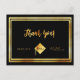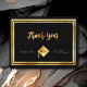 Una tarjeta de agradecimiento para el graduado. Un color de fondo negro y un marco de oro falso. En la parte delantera, un estilo de letra a mano y el texto: ¡Gracias! Graduado 2023 (o cualquier año) y una gorra de graduación, sombrero. Detrás: Plantilla para tu nota de agradecimiento y nombre. Sin color de fondo.