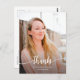 Gracias por el diseño de la graduación, para la universidad o la escuela secundaria, con fotos de sangre completa y la palabra "gracias", en escritura moderna. Fácilmente personalizar con tus fotos favoritas (delante y atrás) y tu texto. Incluye un mensaje corto, al fondo.