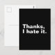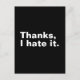 Toma esta camiseta con la divertida frase "Gracias, la odio". para eventos sociales incómodos y momentos vergonzosos. Muestra tu sentido del humor usando este estilo de texto básico y genial. para Amantes del Arte Contemporáneo en Negro y Blanco. Estoy seguro de que puede generar muchas conversaciones y ayudará a romper el hielo. Este divertido diseño incómodo es una excelente idea de regalo para empleados, colegas, compañeros de trabajo, gerentes, supervisores, amigos o familiares, y también es un excelente regalo de cumpleaños, días festivos o regalo de Navidad. ¡Celebra cualquier ocasión con un toque de personalidad y comodidad! (¡PUEDES CAMBIAR Y PERSONALIZAR ESTE DISEÑO DE TEXTO O CUALQUIER TEXTO QUE QUIERAS EN LA TIENDA TEXTIFY!).