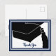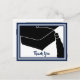 Escriba sus notas de agradecimiento con esta tarjeta postal blanca y de la Marina de Campeón de Gracias. Incluye una tapa de grad sobredimensionada con "Gracias" en un tipo de letra de escritura moderno de la marina. Personalízalo con una nota en la parte posterior.