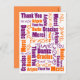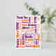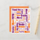 Envía un mensaje de tarjeta postal único con esta nube de palabras de agradecimiento multilingüe morado y naranja en una variedad de estilos de letra. Haz clic en personalizar para agregar texto en la parte posterior o déjalo en blanco para un mensaje manuscrito. En personalizar puedes seleccionar diferentes colores de fondo para la parte frontal y posterior.