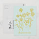 Una postal para dar a los clientes para agradecerles por sus negocios decorada con flores de manzanilla en un cálido tono amarillo sobre un fondo turquesa claro. En la parte posterior hay un suave tono gris y texto que puede editar para adaptarlo a sus necesidades.
