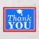 Envíe esta tarjeta roja azul azul azul azul grad Gracias a su postal a todos los que apoyaron y animaron su carrera escolar. Presenta una tapa de grad y un tipo de letra clásico con llamativos colores de escuela rojo, blanco y azul. Escribe tu carta personal en la parte de atrás.