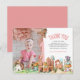 Gracias por la foto del primer cumpleaños en el Bosque de las Hadas. El diseño incluye una foto de la cumpleañera, iconos del bosque de las hadas, gnomo, hadas, pájaros, etc. y gracias en tonos brillantes de rosa. Personaliza con tu mensaje y nombre.