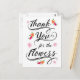 Gracias a los que han enviado flores al funeral de un ser querido con esta tarjeta única de caligrafía con el mensaje en letras negras, "Gracias por las flores", en fondo blanco con coloridos acentos florales.