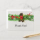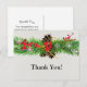 Este elegante diseño presenta una rama de pino con piñas, bayas rojas, copos de nieve y una cinta roja. El texto se puede personalizar.