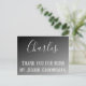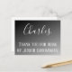 Tu novio júnior hizo un gran trabajo en tu boda. Muéstrale amor y aprecio con esta nota de agradecimiento personal. Mostrando su nombre escrito con letras cursivas blancas en un fondo oscuro negro, debajo está "Gracias por ser mi Groomsman Junior" escrito con una maravillosa fuente blanca. Personaliza tu postal gracias hoy!