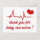 NewParkLane - Tarjeta postal de agradecimiento médico, con un latido, un corazón y la cita 'Gracias por ser nuestro enfermero' en tipografía roja linda.