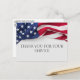 Estas son tarjetas postales de dirección de devolución corporativa de la bandera estadounidense de "Gracias por su servicio". Agregue su información de contacto y mensaje personalizado en el reverso. Imagen de la bandera de los EE. UU. Puede cambiar el estilo de texto/fuente/color. Ideal para organizaciones sin fines de lucro, empresas de construcción estadounidenses, militares, gobierno y veteranos.