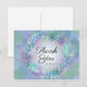 Hermosa y elegante Gracias postal con una corona floral azul y verde sobre un fondo de color morado, azul y verde. El texto del personalizado dice: "Gracias por todo lo que haces".