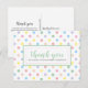 Esta tarjeta postal de agradecimiento para una fiesta de cumpleaños cuenta con lunares pastel suave y se utilizan tipografías modernas y de escritura. La parte trasera de la postal se puede personalizar o se puede eliminar el texto para un mensaje escrito a mano. Diseñado hermosamente para una niña o un niño. Envíame un mensaje si necesitas ayuda o tienes alguna solicitud especial.