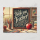 ¡Aquí está tu postal de la Semana de Apreciación del Profesor al estilo de las acuarelas! 🎨 📚 La imagen cuenta con una pizarra vintage con una elegante caligrafía en blanco que dice "¡Gracias, profesor!", junto con elementos clásicos de manzana y libros en un acogedor ambiente de salón de clases.