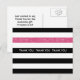 Dé las gracias con este moderno poster horizontal de rayas blancas y negras con una banda purpurina rosa caliente añadiendo su propio mensaje personalizado al frente y la parte posterior. Este moderno patrón de rayas gráficas es perfecto para agradecer el regalo. Imagen plana impresa, NO purpurina real.