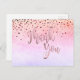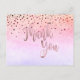 Postal Gracias Rosa Purpurina Rosa Confetti