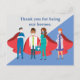 Agradezca a los trabajadores de la salud representándolos como superhéroes con capas rojas y azules. Gracias por ser nuestros héroes durante una pandemia y arriesgar sus vidas para salvar las nuestras. Agradecemos a todos los primeros respondedores en la primera línea. Cada médico y enfermera merece nuestro respeto. Envíeles una postal de agradecimiento.