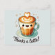 Expresa tu gratitud con esta encantadora tarjeta que presenta un simpático personaje de latte y el juguetón mensaje "¡Gracias un latte!". Perfecta para enviar un sincero agradecimiento a alguien especial. Esta adorable tarjeta añade un toque de fantasía y calidez a tu mensaje de aprecio.