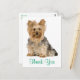 ¿Quién puede resistir la cara adorable del cachorro Yorkshire Terrier? Esta divertida postal de Gracias saluda incluye un cachorro de pelo largo de Yorkshire Terrier sobre un fondo blanco y fresco. Las postales son la alternativa económica a las tarjetas de felicitación cuando quieres que alguien sepa lo que piensas de ellas. Los saludos con duchas te ayudarán a enviar Gracias y a traer sonrisas a tu familia y amigos.