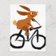 Postal Graciosa Bicicleta de Conejo Marrón