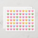 Graciosa chica linda conversación personalizado dulce corazón patrón Postcard. Texto de personalizable completo. Así que puedes personalizar el mensaje dentro de cada corazón y hacer que cada corazón/mensaje sea único. 16 corazones diferentes que conforman el patrón. Colores variados. 6 corazones rosados, 2 corazones naranjas, 2 corazones azules, 2 corazones verdes, 2 corazones morados, 2 corazones amarillos. Con un fondo de color modificable en blanco. Estas postales son estupendas para tus novias y amigas para el Día del El día de San Valentín / Galentine.