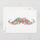 Postal Gracioso bigote floral verde verde rosa