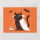 Postal Gracioso gato negro de vampiro para Halloween
