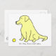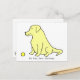 Hay una variedad de postales de perro para alguien que quiere enviar un mensaje de una manera encantadora a otra persona. ¿Tienes un tipo favorito? ¿Tienes un tipo de perro favorito? Bueno, en esta postal, hay un divertido laboratorio personalizado amarillo y una pelota de tenis. Debajo de este divertido animal hay tres órdenes: "Siéntate. Quédate. Tengan una pelota hoy." El dibujo no sólo es humorístico, sino también bonito. Pero de todas las postales de perro lindas, ¿es ésta para ti? Eso depende de ti. Así que si has estado mirando a través de todas las postales del amante de los perros por un tiempo, tal vez puedas terminar tu búsqueda aquí.