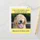A todos les gusta el buen chiste, sobre todo a los perros. Esta postal muestra una fotografía de un perro recuperador de oro que se ríe y dice: "Tengo muchos chistes sobre los desempleados, ¡pero ninguno trabaja!" El texto del personalizable en la espalda dice: "¡Hardy ja!"