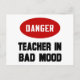 Dé a sus estudiantes una alerta temprana con este Peligro, profesor en camiseta de mal humor. Este divertido regalo para profesores y camisetas para profesores es un gran regalo para todas las ocasiones para tu profesor favorito.