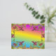 Postal Gradiente de arcoíris con flor púrpura fleur di li