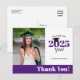 Esta tarjeta de agradecimiento de graduación con foto ofrece un marco de foto personalizado y acentuado con un estilo de bloque de color púrpura y blanco. La promoción de 2025 aparece con un gorro de graduación encima del "0".