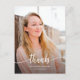 Diseño de graduación de agradecimiento, para universidad o escuela secundaria, con foto de sangrado completo y la palabra "gracias", en escritura moderna. Personalice fácilmente con sus fotos favoritas (delante y detrás) y su texto. Incluye mensaje corto, en la parte posterior.