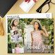 Tarjeta de agradecimiento con collage de 4 fotos de graduación con elegante caligrafía moderna
