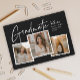 Invitación a graduación de Collage de fotos de escritura moderna con letra manuscrita y 3 fotos en la parte delantera con nombre y detalles de graduación. La parte trasera tiene 2 fotos y detalles fiestas. Haga clic en el botón de edición para personalizar de este diseño.