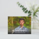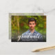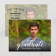 La palabra "graduado" en un elegante guión en blanco junto con el nombre del graduado y el año de clase SAVE THE DATE para su fiesta de graduación o la ceremonia de graduación. Pon tu foto en la parte delantera - hemos añadido un degradado negro en la parte inferior para que "graduado" sea legible sobre tu foto. Añade la misma o diferente foto en la parte posterior de la dirección: hemos agregado una superposición de foto suave a la imagen posterior para facilitar la lectura de la información. MÁS diseños en nuestra colección.
