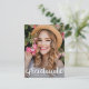La palabra "graduado" en un elegante guión en blanco junto con el nombre del graduado y el año de clase (o borrar esa línea) GUARDA LA FECHA para tu fiesta de graduación o ceremonia de graduación. Añadir la misma o diferente foto en la parte posterior *TIP: Simplemente cambiamos el tamaño de la misma foto a un diseño horizontal antes de que la subiéramos por la parte posterior y está detrás de una capa transparente para su texto es fácil de leer. Más diseños en nuestra tienda.
