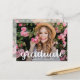 La palabra "graduado" en un elegante guión en blanco junto con el nombre del graduado y el año de clase (o borrar esa línea) GUARDA LA FECHA para tu fiesta de graduación o ceremonia de graduación. Añade la misma o diferente foto en la parte posterior. Más diseños en nuestra tienda.