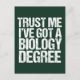 Créeme, tengo un título de biología. Una tarjeta postal de humor para un profesor de bio-bio o profesor gracioso después de graduarse en la universidad o en la universidad con un título de docente. Un diseño genial de citas biólogas.