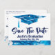 Postal Graduación Salvar La Cita Elegante Mármol Azul