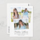 Comparte tus emocionantes noticias con esta exclusiva invitación de graduación de 3 fotos e invitación para una fiesta de graduación. La parte delantera de la tarjeta postal de graduación incluye tres fotos del nuevo grado, dispuestas en un divertido diseño de collage de fotos. Añada el nombre del graduado, la escuela y el año de graduación debajo de las fotos. La sencilla paleta de colores gris y blanco resalta las tres fotos. En la parte posterior, personalice la plantilla con un mensaje personalizado y los detalles de su fiesta de graduación.
