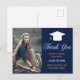 Una clásica tarjeta postal de agradecimiento de graduación con fotografía personalizada en elegante azul marino y dorado para escuela secundaria, universidad o instituto de la promoción de 2026. Personalice con el nombre de su escuela y la clase graduada bajo la encantadora caligrafía para una elegante tarjeta de agradecimiento con foto de graduado personalizada con su retrato de último año.