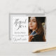 Una foto moderna y elegante Tarjeta postal de graduación de agradecimiento. La parte delantera puede ser cualquier foto favorita de graduado con la escritura de moda GRACIAS, Clase de Info y Nombre del Graduado. La parte trasera ofrece una plantilla de texto para mensaje genérico y espacio para más. Cambie el color de fondo para el tema escolar o para complementar la foto de su graduado.